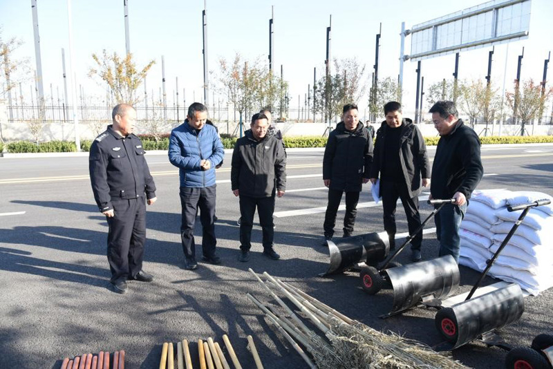演練前,肖隊長一行還檢查了掃雪除冰物資儲備情況。