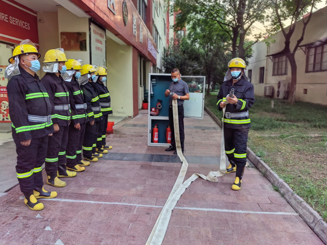 “立正,向右看齊,向前看 ?!?9月1日,園區(qū)公舍微型消防站,建發(fā)公司正在開(kāi)展應(yīng)急救援集訓(xùn),訓(xùn)練場(chǎng)上身穿著消防服的“消防員們”個(gè)個(gè)精神飽滿(mǎn)、斗志昂揚(yáng)。