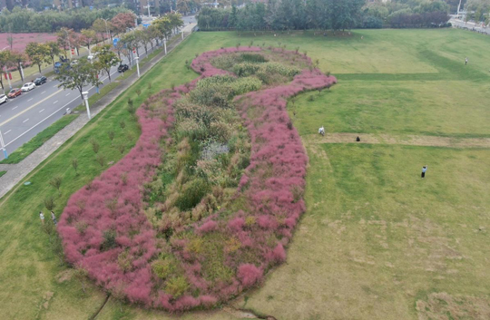 在中央商區(qū),成片的粉黛亂子草正值最佳觀賞期,云霧般的粉色花穗在陽光下輕盈搖曳,已成為市民爭相打卡的“網(wǎng)紅”景點。“粉黛亂子草觀賞性雖高,養(yǎng)護卻需格外精心。”建發(fā)公司相關負責人介紹,為維持其最佳觀賞狀態(tài),園區(qū)采取了分區(qū)、分時的精細化養(yǎng)護策略。盛花期期間,養(yǎng)護人員會精準控制澆水量,避免過多水分影響花穗形態(tài);雨季則及時排水,嚴防積水導致爛根。同時,還安排了專人全天巡視,引導游客在指定區(qū)域文明觀賞,并對局部受損區(qū)域?qū)嵤?ldquo;點對點”修復,確保每一株粉黛都能以最美姿態(tài),展現(xiàn)秋天的溫柔與浪漫。